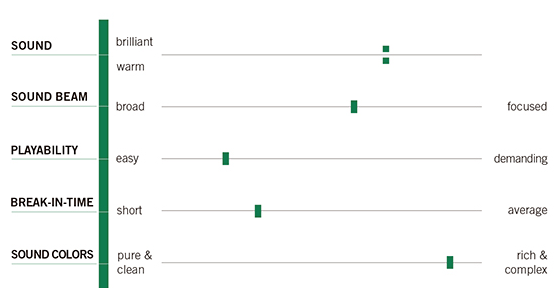 Cordas com um excelente foco e brilho, sem descuidar os harmónicos e corpo.