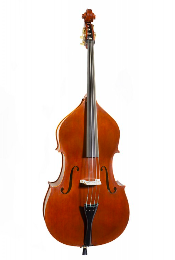 Este contrabaixo, de modelo alemão, está construído com tampo de abeto seleccionado e laterais e fundo laminados.