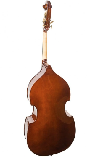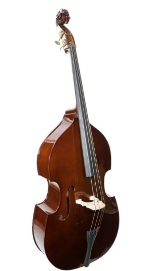 O contrabaixo Primo é um instrumento adequado para um iniciante. É fabricado com madeira laminada mas a escala e espetana são de ébano.