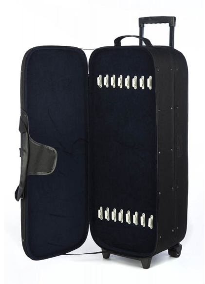 Trolley muito práctico e seguro para transportar 4 violinos e 8 arcos.
