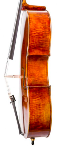 Está equipado com espigão de carbono, que reduz o peso e aumenta a resposta e vibração, cavalete Despiau e cordas Thomastik Versum. No menu de opções pode escolher outras cordas para personalizar o seu instrumento